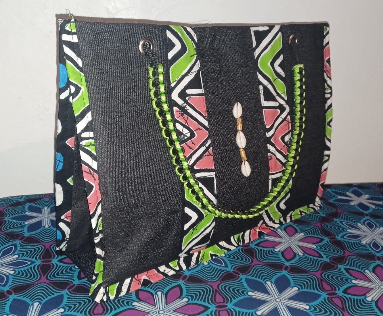 Sac à main semi-rigide en wax 100% coton et Jeans de qualité