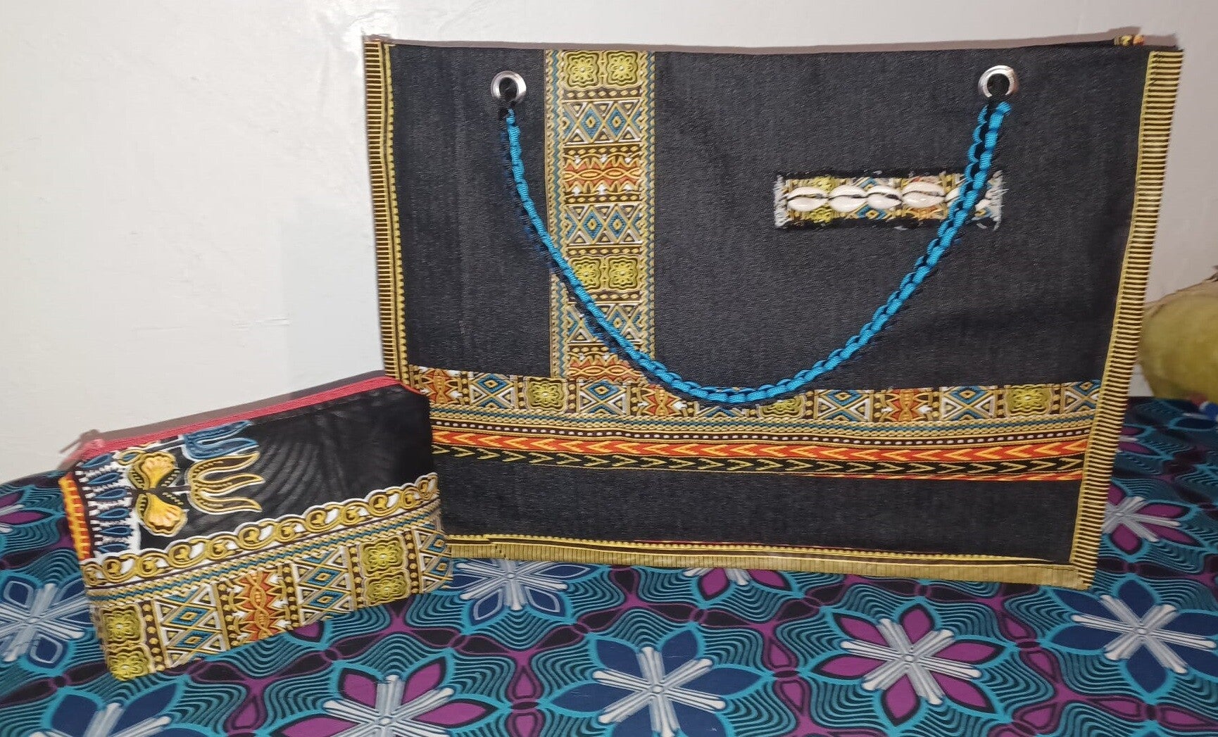 Sac à main semi-rigide en wax 100% coton et Jeans de qualité