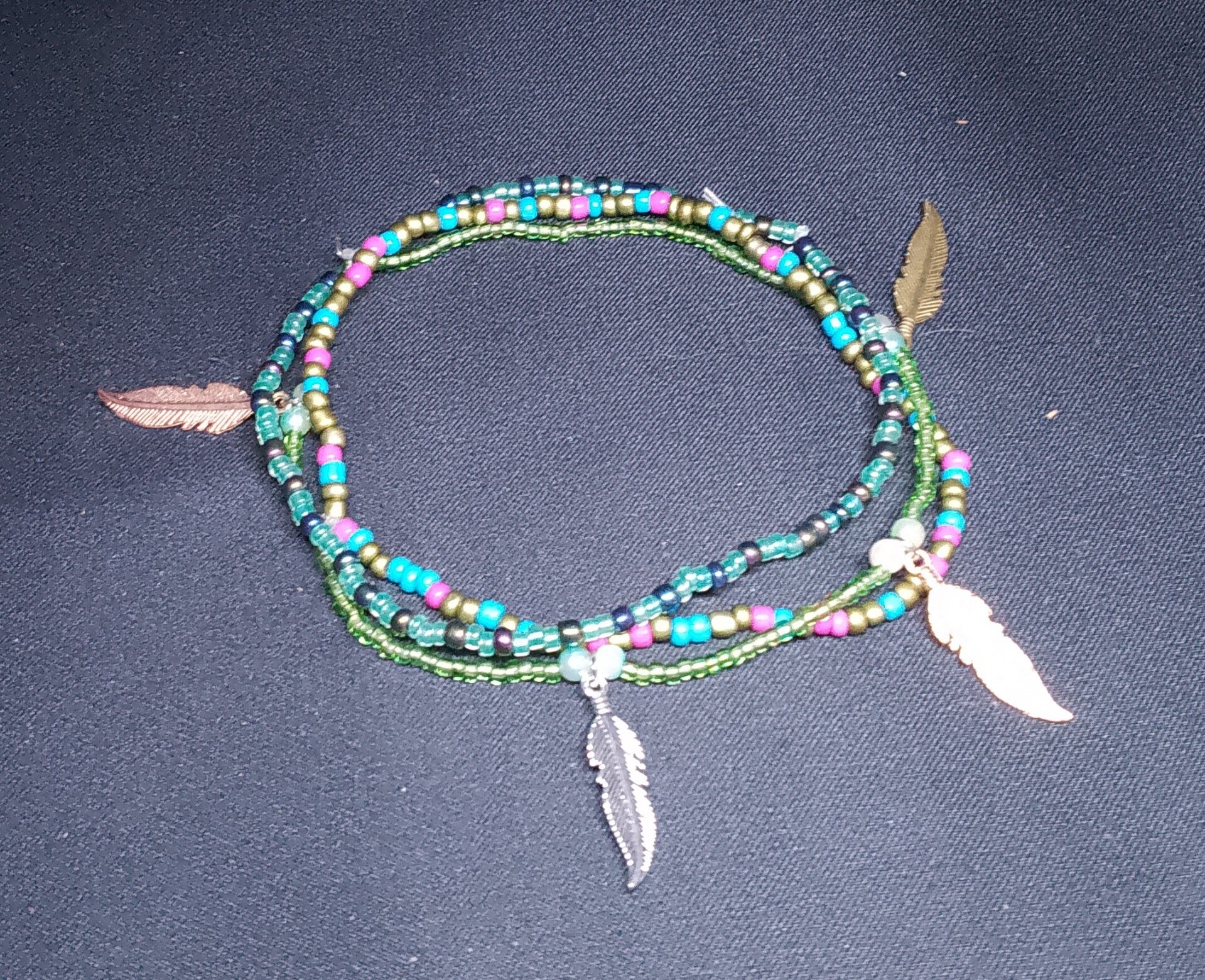 3 chaines de cheville avec fil extensible et perles 5 mm