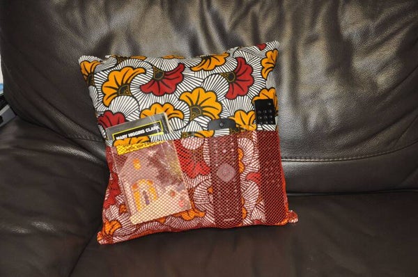 Housses pour coussins en wax 100% coton avec filet de rangement pour télécommandes TV