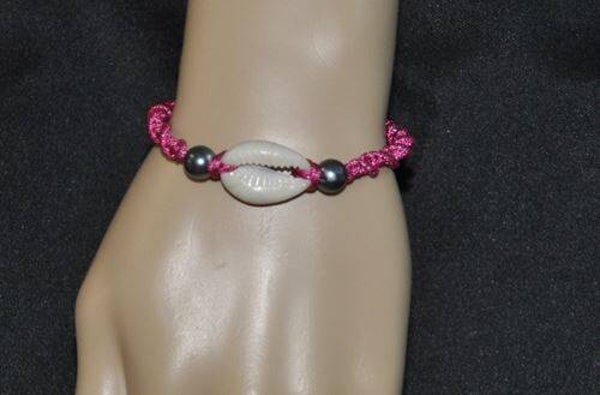 Bracelet macramé fin, tressage torsadé, véritable cauris de 2,2 cm