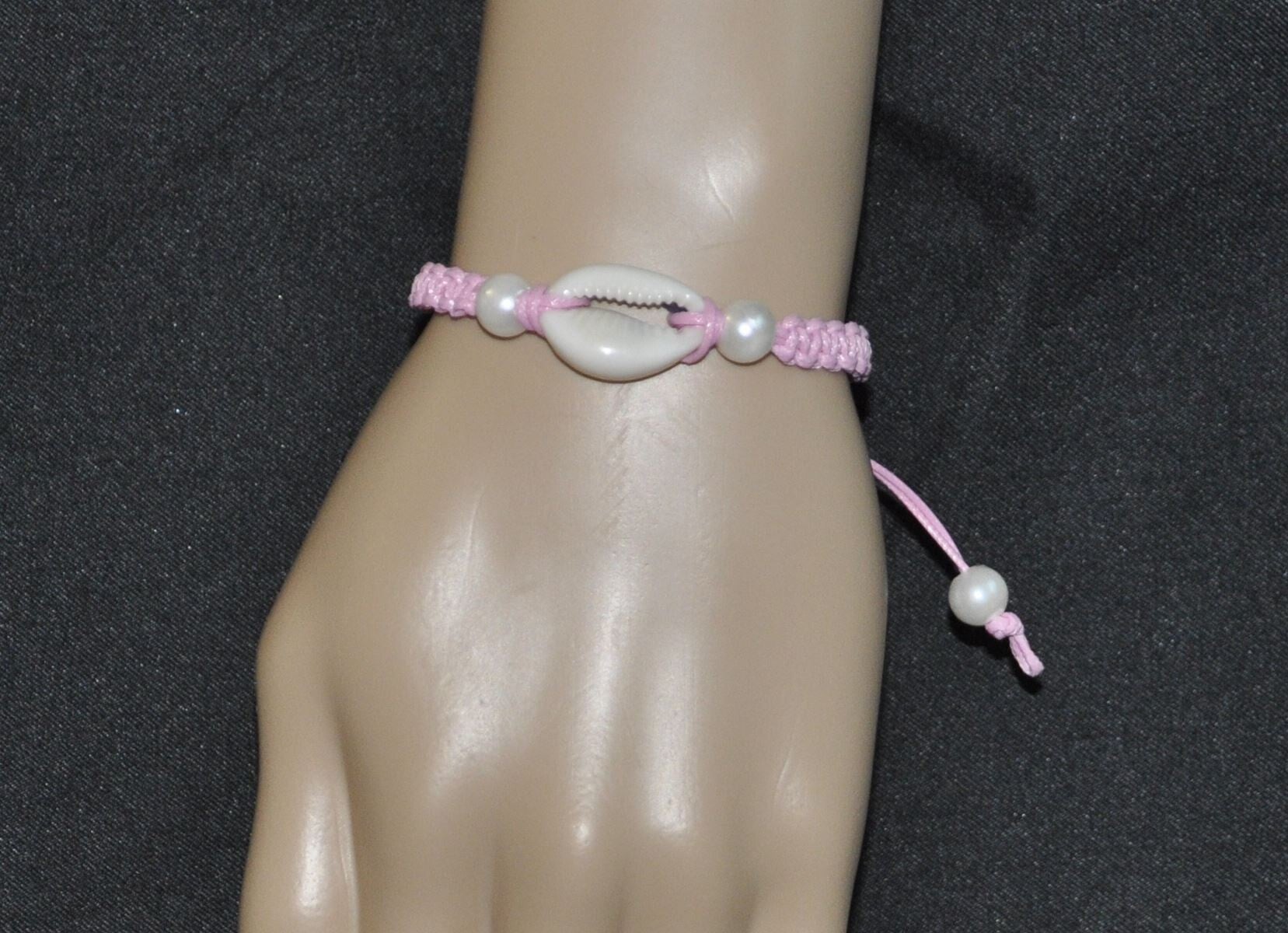 Bracelet macramé fin, tressage plat, véritable cauris de 2,2 cm