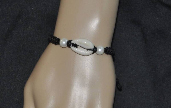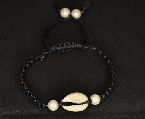 Bracelet macramé fin, tressage plat, véritable cauris de 2,2 cm