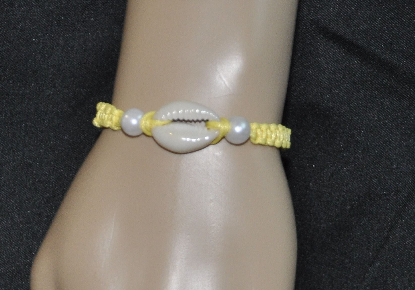 Bracelet macramé fin, tressage plat, véritable cauris de 2,2 cm
