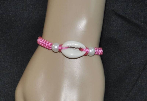 Bracelet macramé fin, tressage plat, véritable cauris de 2,2 cm