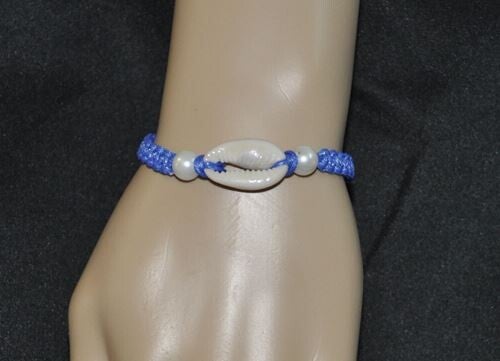 Bracelet macramé fin, tressage plat, véritable cauris de 2,2 cm