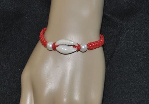 Bracelet macramé fin, tressage plat, véritable cauris de 2,2 cm