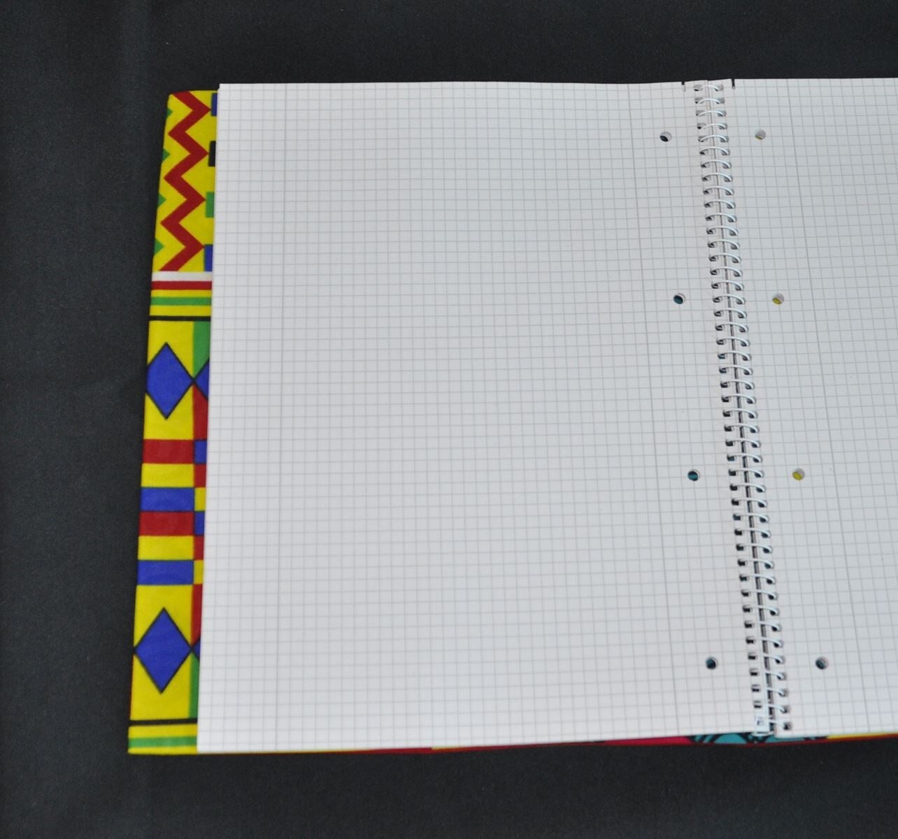 Couvre cahier A4 à spirales REVERSIBLE en wax 100% coton