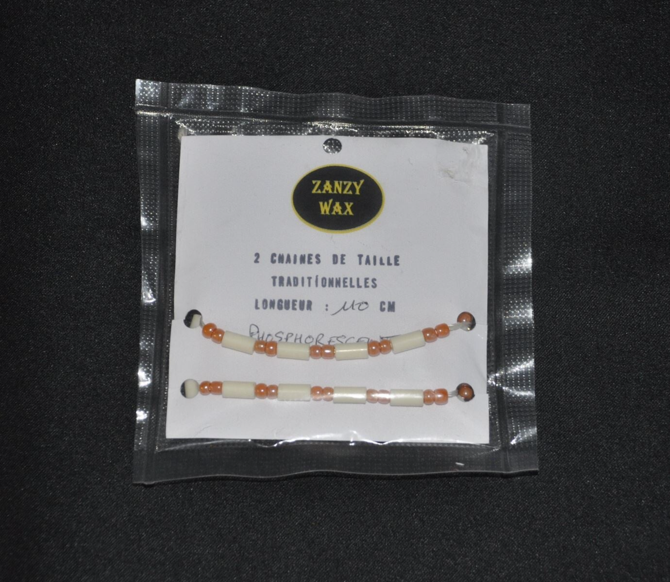 2 Chaines de Taille traditionnelle, fil blanc et perles moyennes phosphorescentes