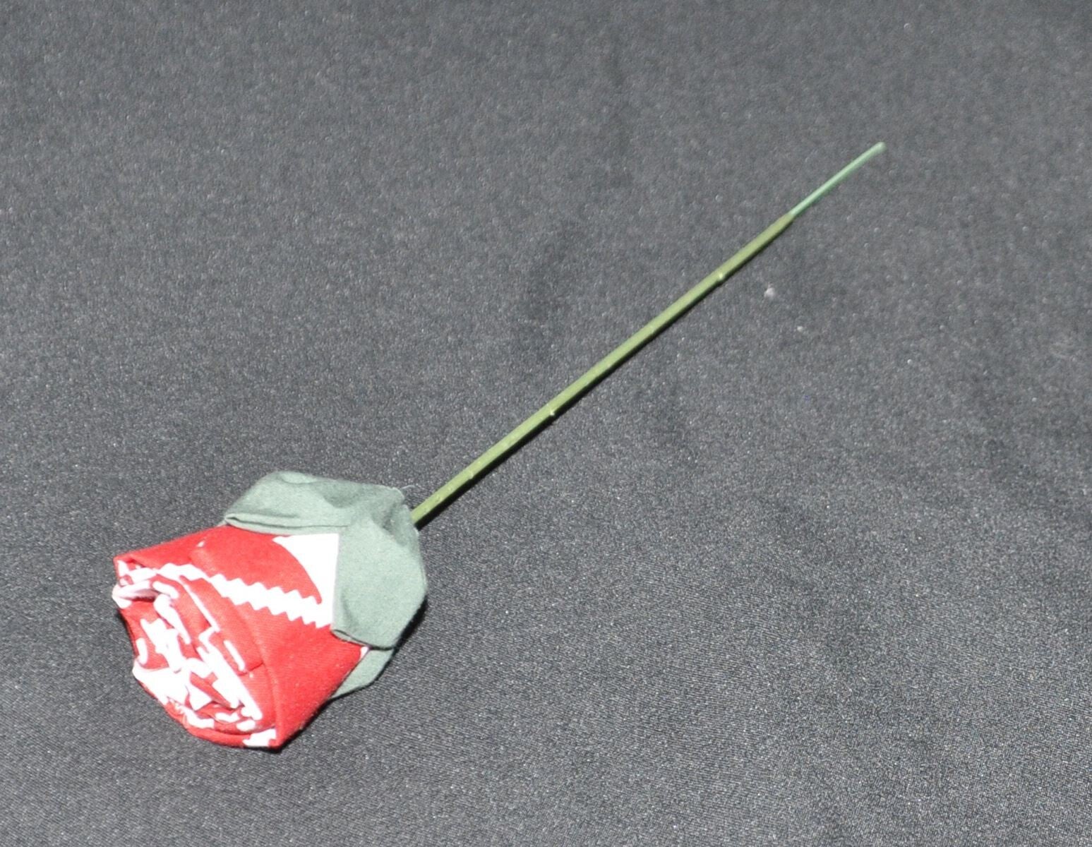 Rose en wax imprimé pour les pétales et coton uni pour les sépales