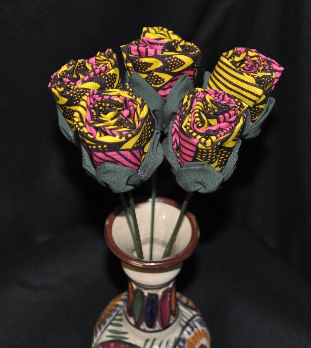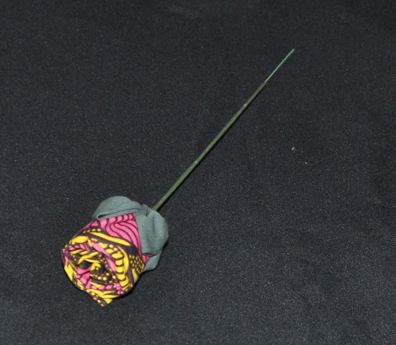 Rose en wax imprimé pour les pétales et coton uni pour les sépales