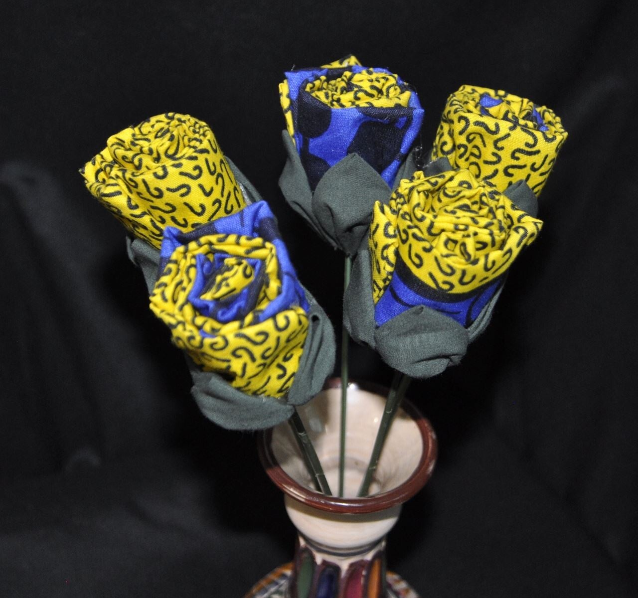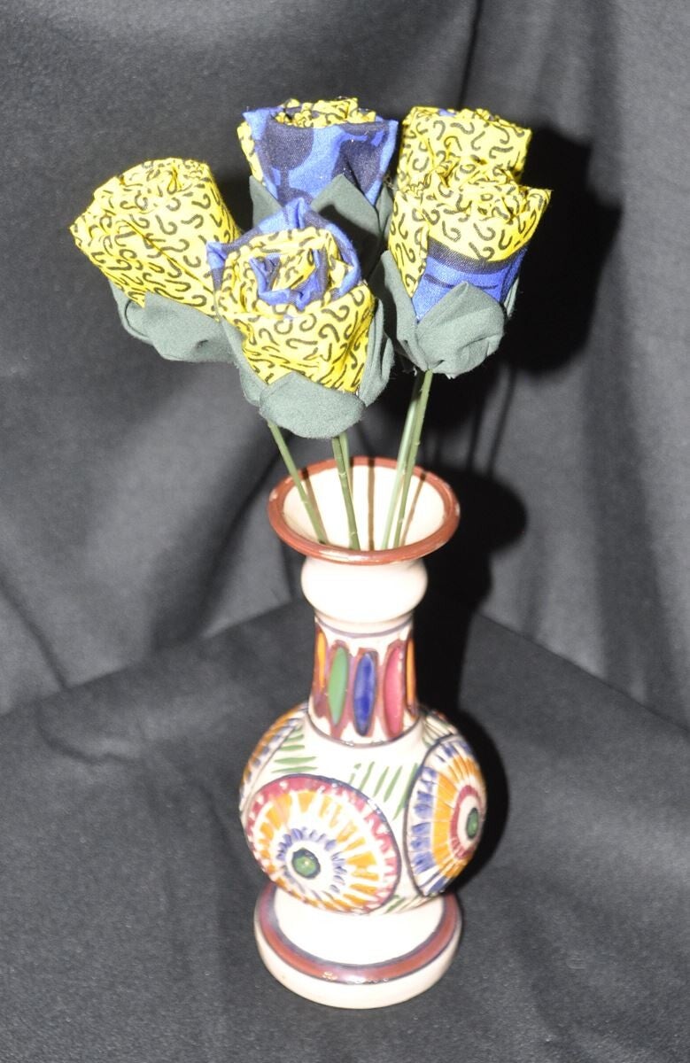Rose en wax imprimé pour les pétales et coton uni pour les sépales
