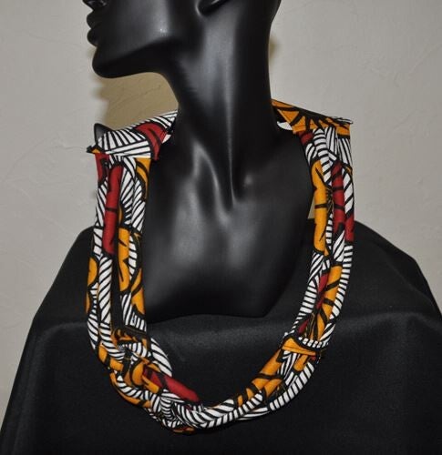 Collier en wax 100% coton, fermoir bouton pression