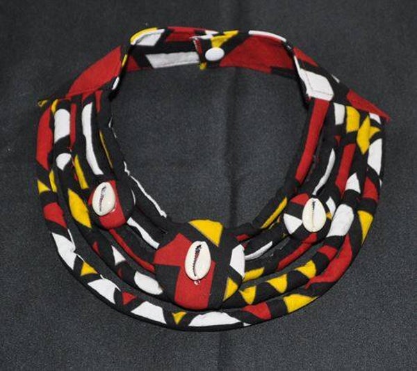 3 boutons recouverts Wax 100% coton et ornés de 3 authentiques cauris