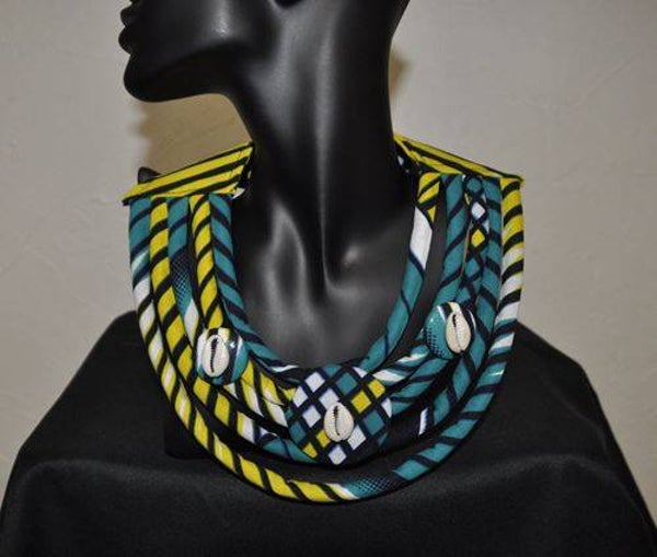 Collier en wax 100% coton, fermoir bouton pression
