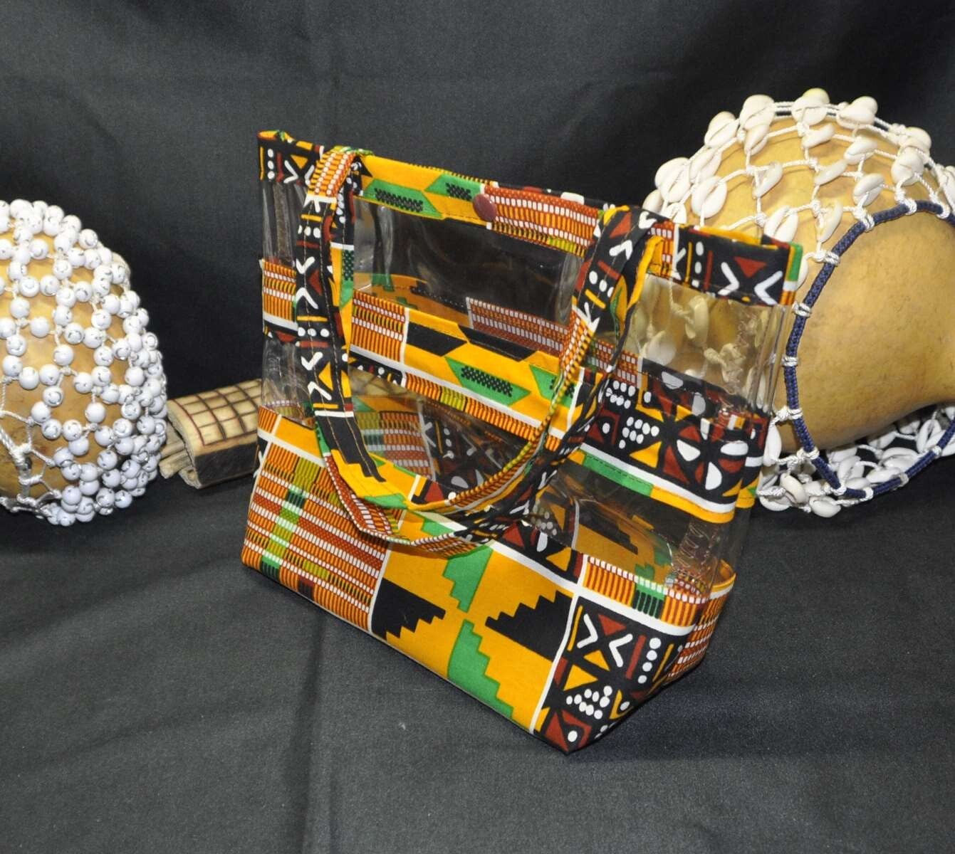 Sac à main en wax 100% coton et vinyle transparent